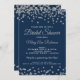 Bridal Shower Silver Faux Glitter Confetti Navy Invitation