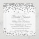 Bridal Shower Silver Faux Glitter Confetti White Invitation