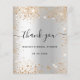 A thank you note for a Bridal Shower. A faux silver metallic looking background. With faux gold glitter dust. On front large hand lettered script and the text: Thank You, your text, title and a date.