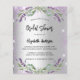 A modern, stylish birdal shower invitation. A faux silver looking background with violet faux glitter, sparkles, lavender florals, flowers and eucalyptus greenery. Personalize and add the name and party details.