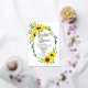 Classy and stylishly modern sunny sunflowers and eucalyptus greenery frame design "Bridal Shower" on an editable white background. Back features a coordinating sunflower bouquet also on an editable white background. All artwork is uneditable.