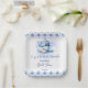 Bridal shower tea party blue tiles blue china tea pot elegant personalized paper plates.