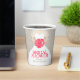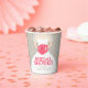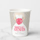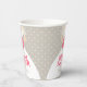 Elegant bridal dress with posy pink stylized roses floral and grey heart rain bridal shower disposable paper cup. Edit these cups with your own honouring bride-to-be's name. Ideal for use at a bridal shower party and matches the dress bouquet pink roses wedding set. © Original graphic art and design by Sarah Trett. www.mylittleedenweddings.com