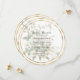 A beautiful round bridal shower invitation of white roses in reduced opacity with a double gold color frame.