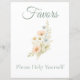 Welcome guests with a beautifully coordinated touch using this wildflower favor table sign, designed to perfectly match your bridal shower theme. Easily personalize with custom wording to suit your event style. This elegant sign makes a thoughtful addition to your celebration and pairs perfectly with matching stationery—ideal for styling your favor table, guiding guests, or adding a polished finishing touch to your event décor.