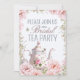 An elegant bridal shower tea party invitation with pink rose flowers and a vintage teapot on the front with a stack of vintage teacups on the back in soft shades of pink and teal. Customize with your event's name on the front and personalize the back with the bride's name, time and date of the event, location and contact details for RSVPing.