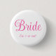 Button Pin casual fun fashion statement accessory printed with White Colour background and Bride in Hot Pink Colour text typography lettering design by TheFabricSeal print on demand shop at Zazzle.com #ZazzleMade https://www.zazzle.com/store/thefabricseal TheFabricSeal©️Original.