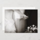 Elegant black and white print of bride and groom holding hands on wedding invitation