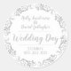 Wedding day stickers. Circular stickers with the names of the bride and groom on their wedding day. Includes the date of the wedding.