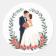 Bride and Groom with Floral Ring Classic Round Sticker