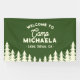 Camp bachelorette welcome banner in green for a girls trip weekend glamping destination sets an instant “Camp Bride” vibe and helps guests find base camp the moment they arrive. Designed for cabins, lake houses, mountain lodges, campsites, and national park rentals, this personalized banner features the bride-to-be's camp name and location so you can brand the getaway for your destination bachelorette party. Use it at the lodge entry, bunkhouse door, campsite pavilion, porch railing, or check-in table to greet the crew, mark meeting points, and anchor your rustic adventure theme for hiking, boat days, winery stops, and cozy campfire nights. The outdoorsy artwork and classic camp typography feel right at home with lake, river, tent, mountains, and campfire vibes, and it coordinates effortlessly with matching invitations, favours, and decor for a cohesive suite. Perfect for a mountain camp bachelorette party or a relaxed lake weekend girls trip, this durable welcome banner doubles as a fun photo backdrop and keepsake for the bride after the celebration. If you’re planning an outdoor destination weekend with glamping comforts and adventure plans, this camp bachelorette welcome banner is the versatile, on-theme sign that pulls it all together.