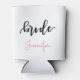 Bride can cooler with black and pink calligraphy lettering. Personalize the name to customize. Modern lettering designed by Joy by Jess.