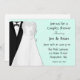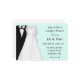 A couples wedding shower invitation with wedding gown and tuxedo on blue background with faint white swirls. Invitations come complete with envelopes and your choice of paper. Graphics ©http://delightful-doodles.com