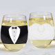 Bride & Groom Suit Wedding Dress Mr. & Mrs Stemless Wine Glass