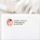Address labels with an illustration of a smiling bride holding a bouquet of flowers in her fancy white wedding dress and wearing a veil. Set inside a pink oval frame with a scalloped border.