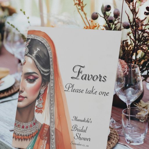 Add a refined cultural touch to your tablescape with a design created for an unforgettable indian hindu desi bridal shower. Showcasing a graceful bride in a traditional indian orange lehenga choli, this artwork reflects the elegance of south asian royal bollywood glam with rich orange gold pre wedding tones. It perfectly complements an indian dulhan mehendi sangeet party or an amerian indian wedding celebration filled with warmth and heritage.