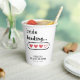 Simple, minimalist bride loading bridal shower paper cups with red hearts. Personalize it with your event details.