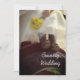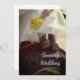Invite guests to your impending ranch marriage ceremony theme with the charming Bride on Tractor Farm Wedding Invitation. This relaxed and rustic custom country chic wedding invite features a quaint digitally enhanced farm style photograph of a bride wearing an ivory satin wedding dress, bridal veil and brown leather western cowboy boots carrying a bouquet of yellow daisies sitting on an old fashioned antique red tractor. Perfect inspo for the cowgirl bride planning a casual barn party ceremony and reception event.