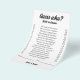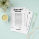 Make your wedding, engagement party, or bridal shower unforgettable with our "Guess Who: Bride or Groom?" game. Featuring a stylish black and white design with elegant calligraphy, this game is the perfect icebreaker, sparking fun and laughter among your guests. Participants will guess interesting facts and stories about the bride and groom, creating an engaging and interactive experience. Easy to set up and play, this game is a fantastic addition to any celebration, bringing everyone together and making your event even more memorable. Ideal for weddings, engagement parties, and bridal showers, "Guess Who: Bride or Groom?" combines entertainment with a personal touch, celebrating the couple's unique journey. Add a sophisticated yet playful element to your special day with this charming game!