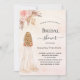 A rose gold, blush pink gradient background. A bride, pink roses, pampas grass. Personalize and add a name and party details.