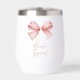 This design features a soft and elegant aesthetic. At the top, there's a delicate, watercolor-style bow in a muted blush pink. Below the bow, the phrase "Bride Squad" is written in a graceful, flowing script font, coloured in a slightly darker shade of pink that complements the bow. The overall look is clean, charming, and stylish, making it a great accessory for a bridal party. It would be perfect for the bridesmaids'.