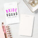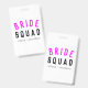 Cute, simple, stylish "Bride Squad" quote art ID badge with modern, minimalist typography in black and hot neon pink in a cool trendy style. The slogan, name and role can easily be personalized with the names of your bridal party, for example, bride, bridesmaids, flower girls, Mother of the Bride, Glam Squad & so much more! The perfect matching, coordinating accessories for team bride for a bridal shower, bachelorette party, or morning of the wedding with a super cute one or a kind personal touch!