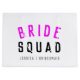 Cute, simple, stylish "Bride Squad" quote art gift bag with modern, minimalist typography in black and hot neon pink in a cool trendy style. The slogan, name and role can easily be personalized with the names of your bridal party, for example, bride, bridesmaids, flower girls, Mother of the Bride, Glam Squad & so much more! The perfect matching, coordinating accessories for team bride for a bridal shower, bachelorette party, or morning of the wedding with a super cute one or a kind personal touch!