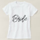 Cute, simple, stylish "Bride" quote art womens t-shirt with modern, minimalist typography in black in a cool trendy style. The slogan, name and role can easily be personalized with the names of your bridal party, for example, bride, bridesmaids, flower girls, Mother of the Bride, Glam Squad & so much more! The perfect matching, coordinating accessories for team bride for a bridal shower, bachelorette party, or morning of the wedding with a super cute one or a kind personal touch!