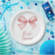 This design features a soft and elegant aesthetic. At the top, there's a delicate, watercolor-style bow in a muted blush pink. Below the bow, the phrase "Bride Squad" is written in a graceful, flowing script font, coloured in a slightly darker shade of pink that complements the bow. The overall look is clean, charming, and stylish, making it a great accessory for a bridal party. It would be perfect for the bridesmaids'.
