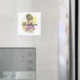 It was a bit smaller than expected, but I was too excited to check dimensions. The product itself send well printed though the grey text is a bit paint. Magnet worked perfectly on my fridge.