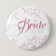 This button proclaims who's the bride and feature glitter-look text and confetti.