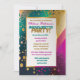 The "Chic Confetti Bachelorette Party Invitation" boasts a dazzling design that's perfect for kicking off a night of fun and celebration. It's splashed with a playful confetti pattern that cascades over a gradient of bold colours, setting a lively and joyful tone for the event. The golden accents and deep blue backdrop add a touch of sophistication, while the clear, vibrant text invites guests to join in the festivities. This invitation offers designated areas to customize with the details of the bachelorette party, making it easy for the host to share the excitement and anticipation with friends.