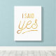 Bride To Be Gift - I Said Yes Gold Foil (faux) Canvas Print