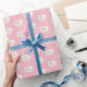 Wrapping paper shown with a pink background colour and a bride to be print.
