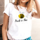 Celebrate the "Bride-to-Bee" with this adorable and whimsical bee-themed t-shirt. Featuring a charming "Bride to Bee" headline in elegant script, this design showcases a sweet yellow and black buzzing honeybee. Perfect for a summer garden party or a "Meant to Bee" themed bridal shower brunch, this t-shirt is perfect for showcasing the bride-to-be in whimsical style. The clean white background paired with vibrant yellow accents makes for a cheerful, high-contrast look that your guests will love. Matching items can be found in the collection.