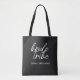 Simple, modern and stylish "Bride Tribe" quote tote with script font in black and white in a trendy style. The names can be personalized with names of your bridal party. You can use it for the bride, bridesmaids, flower girls, or Mother of the Bride. The coordinating accessories for team bride work well for a bridal party proposals, the bridal shower, bachelorette party, the rehearsal dinner, morning of the wedding, or the day after the wedding brunch. Makes a thoughtful personalized gift for the bridal party.