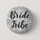 A button pin featuring a silver disco ball and the words Bride Tribe in calligraphy! Perfect for a 1970s theme party or disco bachelorette.