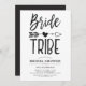 Cartes d'invitation de fête de mariage personnalisées pour votre belle tribu de mariée. Il présente un thème classique de noir et blanc avec les mots bride tribe écrits dans une police de style manuscrit. Entre les deux mots se trouve une flèche tribale perçant un cœur.