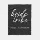 Simple, modern and stylish "Bride Tribe" quote blanket with script font in black and white in a trendy style. The names can be personalized with names of your bridal party. You can use it for the bride, bridesmaids, flower girls, or Mother of the Bride. The coordinating accessories for team bride work well for a bridal party proposals, the bridal shower, bachelorette party, the rehearsal dinner, morning of the wedding, or the day after the wedding brunch. Makes a thoughtful personalized gift for the bridal party.