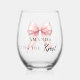 Bride tying the knot pink bow Bachelorette Stemless Wine Glass