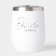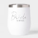 Celebrate your bridal era in style with our Bride Vibes Only | Custom Name in Elegant Script design, featured on a chic stemless wine tumbler. This sleek and modern look with flowing script and a heart detail makes it the perfect gift for the bride-to-be. Personalize with the bride's name to create a stylish keepsake for bachelorette parties, wedding mornings, or just sipping with your girls.