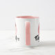 A custom coffee mug personalized with your name underneath the text: Future Mrs. Designed with an illustration of a smiling bride holding a bouquet of flowers in her fancy white wedding dress and wearing a veil. Set inside a pink oval frame with a scalloped border.