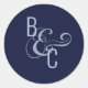 Brides Grooms Monogram Navy Blue Modern Wedding Classic Round Sticker