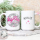 Personalize this custom bride & guest names trendy 70's retro Bride's Last Disco theme bachelorette party / weekend 15 oz. mug party favour gift featuring a silver Disco ball and groovy hot pink script fonts and retro starburst design accents on front, and custom bridesmaid or party guest name on the back. Easily enter your wording details and make it your own! Custom design requests and questions are always welcome - click the message button, or email directly at: contact@figandlilyco.com ♥