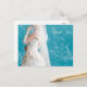 Say "thank you" with this elegant blue and white design. Featuring a bride in a white gown against an ornate floral background.