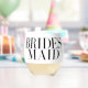 Gift your bridesmaid with a personalized Bridesmaid glass. It has the word "Bridesmaid" in a modern black font. Personalize the back with the bridesmaid’s name. The matching bride and maid of honour glasses can be found in my store, PageCreativeDesigns.