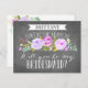 Ask your bridesmaid with a beautiful card that says "I can't say 'I do' without you." This bridesmaid card features lovely watercolored flowers and a mix of modern typography, all on a trendy chalkboard background. Make it easy for them to say yes with this beautiful and stylish card. Available in maid of honour, matron of honour, junior bridesmaid, and flower girl versions. Say thank you with a matching thank you card.