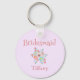 A lovely floral keepsake key chain for your bridesmaid, this design features a soft pink background with "Bridesmaid" written in pink lovely font. Underneath is a pink and blue floral bouquet. Under the bouquet is her name written in beautiful pink font. Personalize this bridesmaid key chain today!