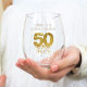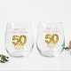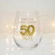Introducing the perfect gift or party favour for a 50th birthday celebration - our stemless wine glass! This elegant and functional glass features a sleek and modern design that is sure to impress your guests. With its sturdy construction and comfortable grip, it's the perfect choice for enjoying your favourite vintage. So why wait? Order your stemless wine glass today and raise a toast to a memorable celebration!