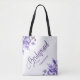 Lavender florwers on a transparent background. Personalize and add a name. The word: Bridesmaid is written with a modern hand lettered style script.